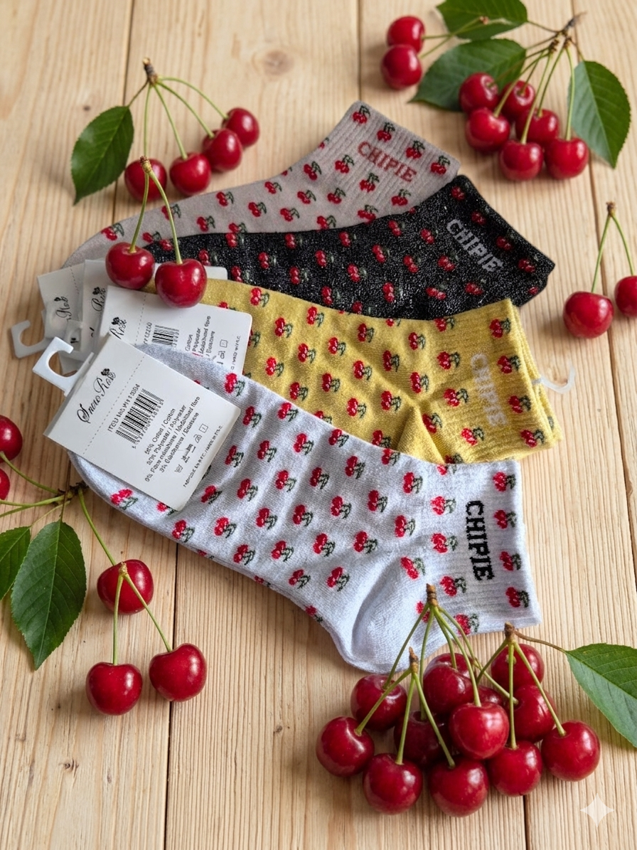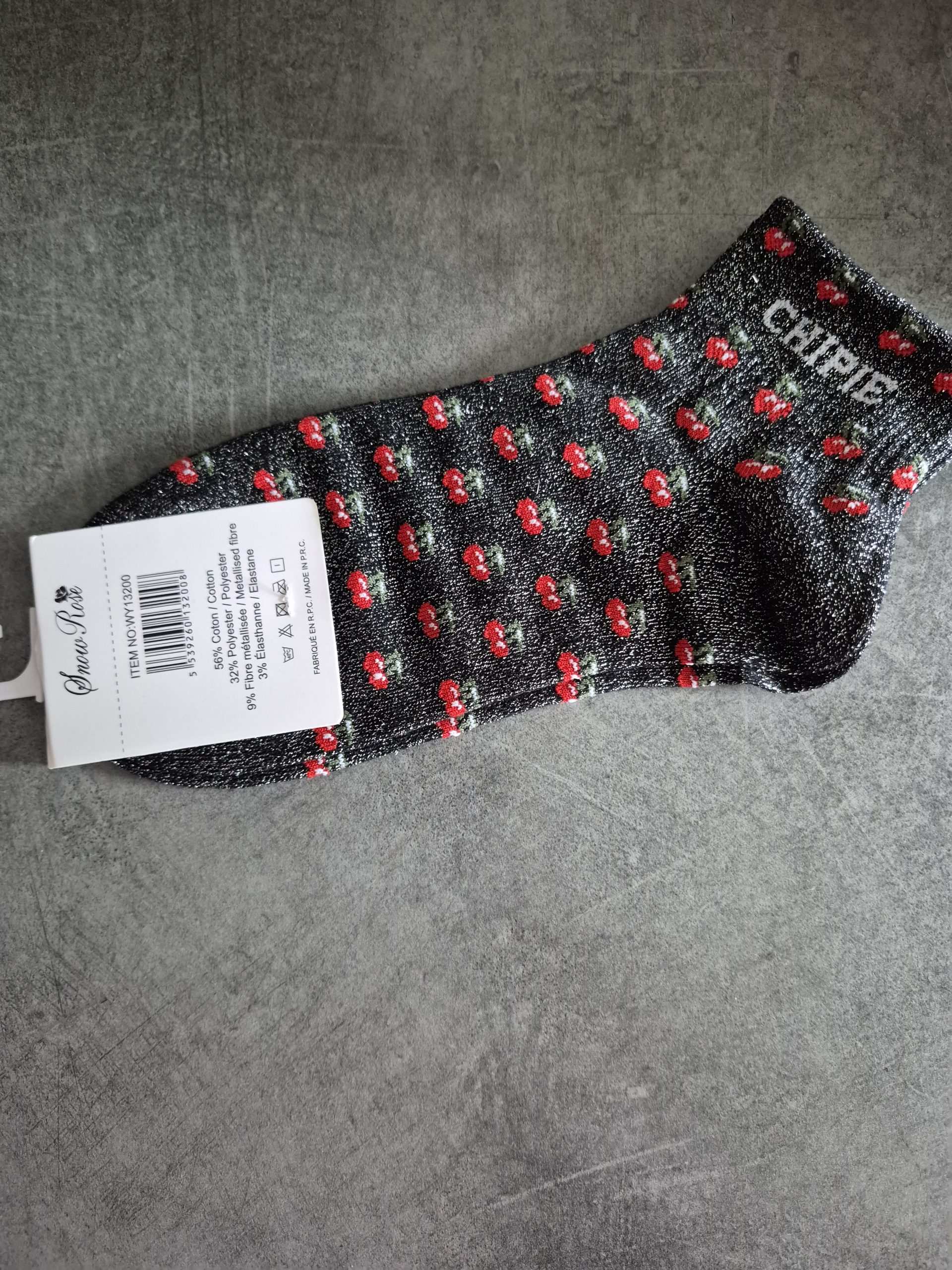 Chaussettes basses à paillettes, imprimé cerises 🍒.