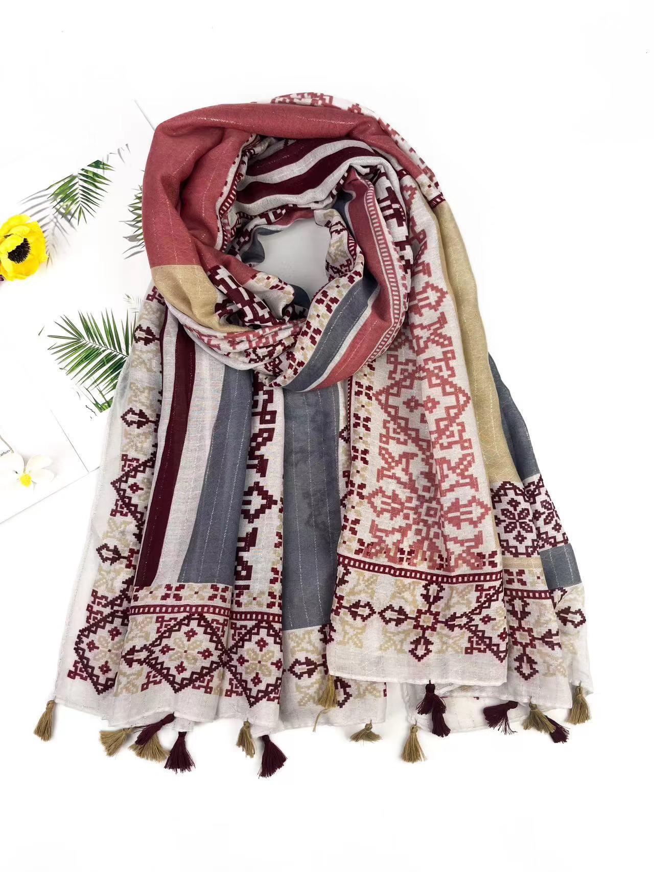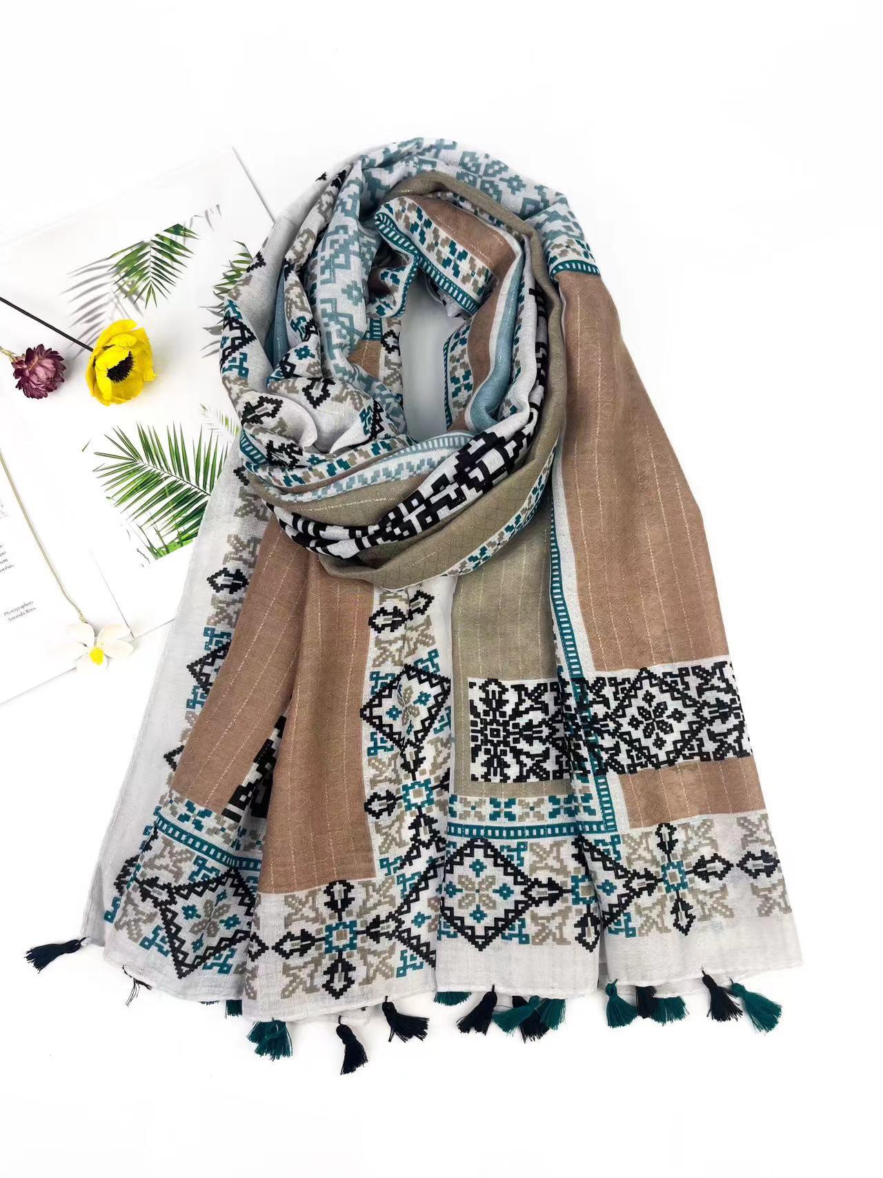 Choisissez ce superbe foulard imprimé bohème avec une finition pompom