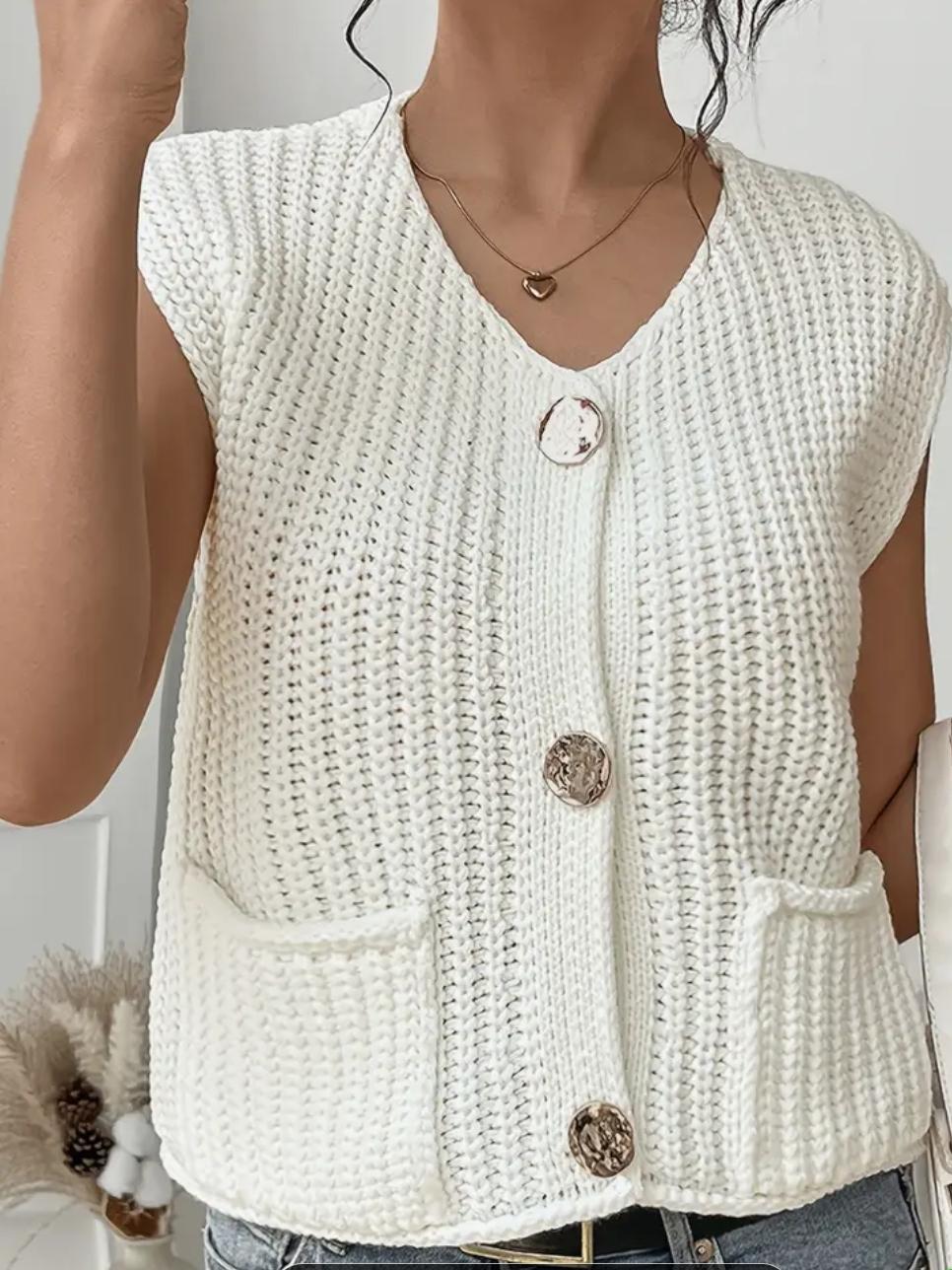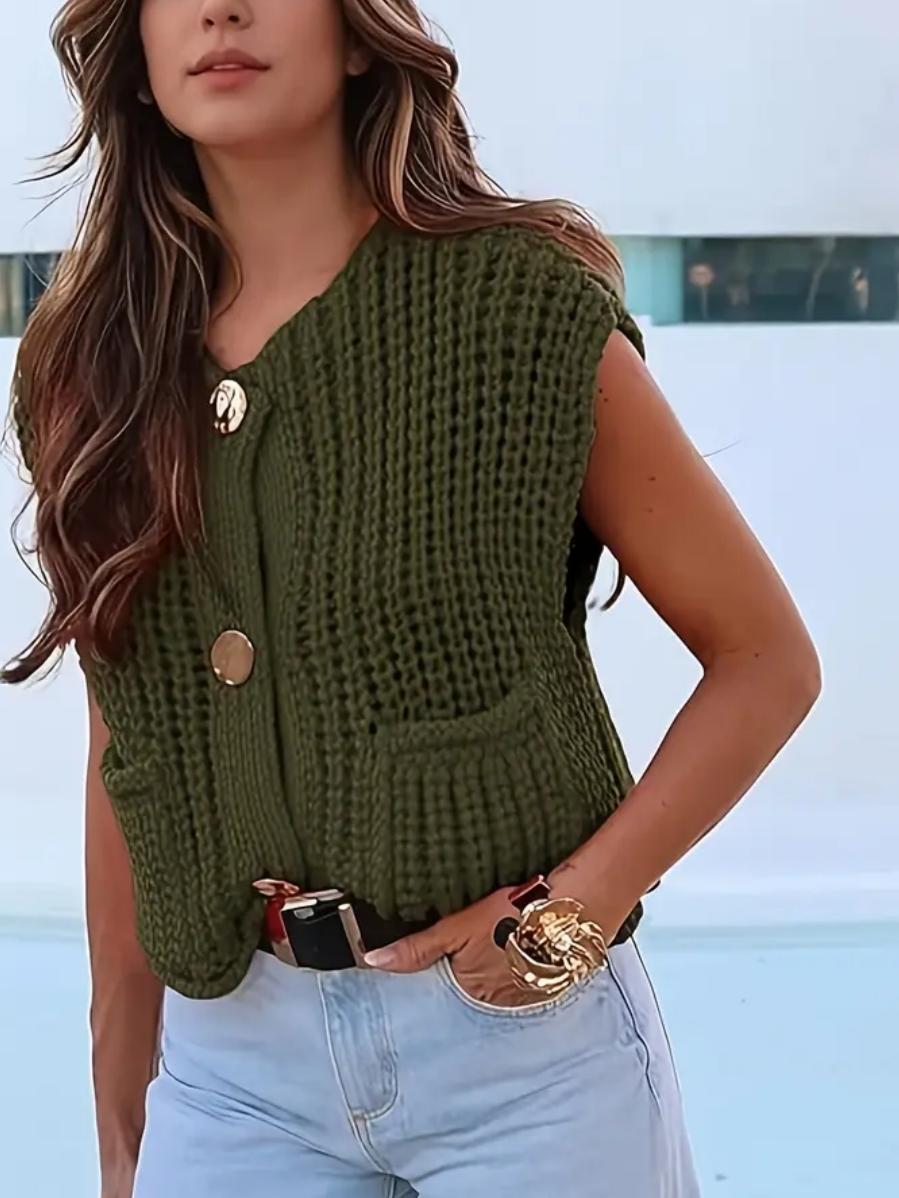 Gilet sans manche, très élégant avec ses boutons dorés.