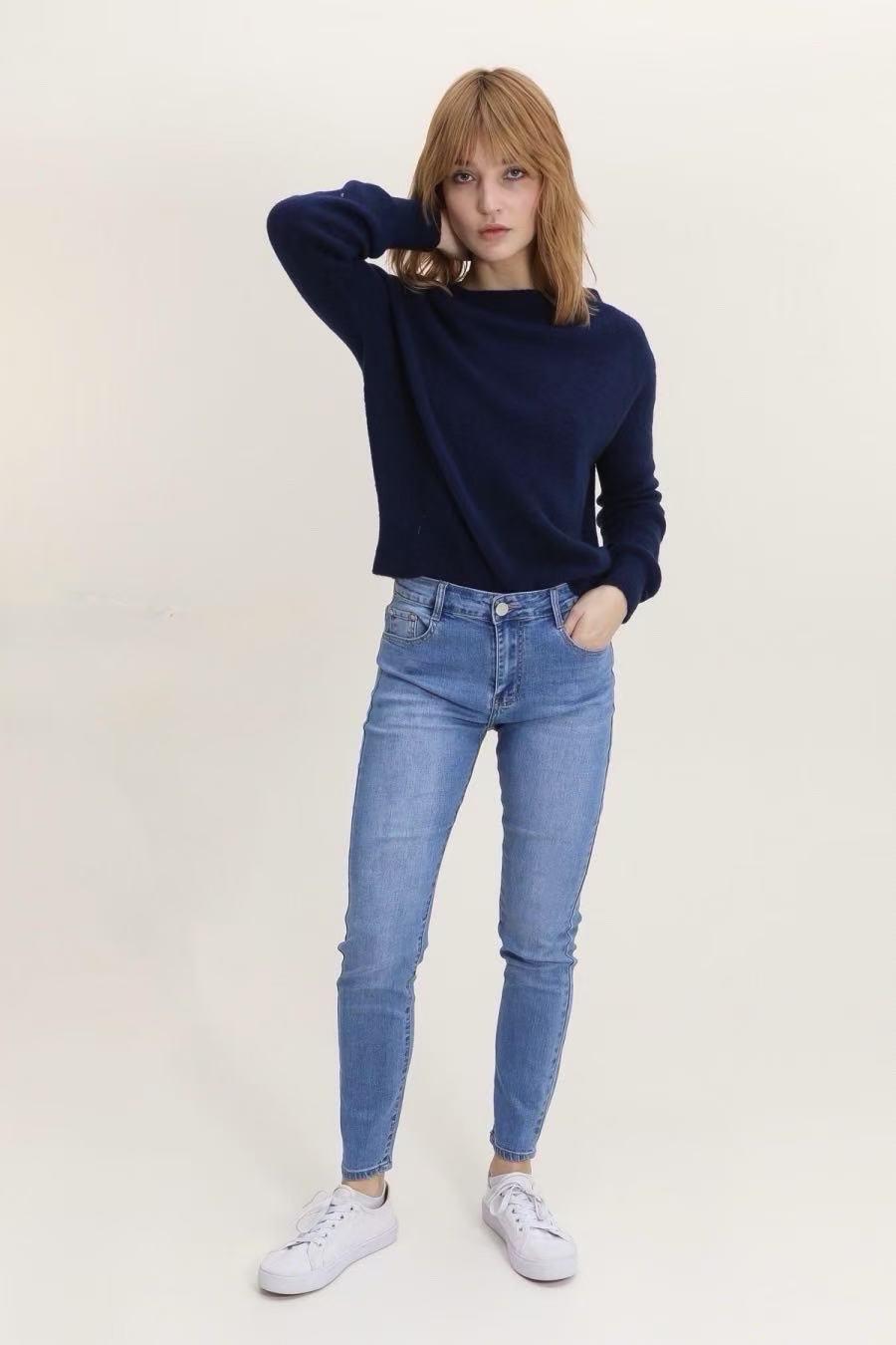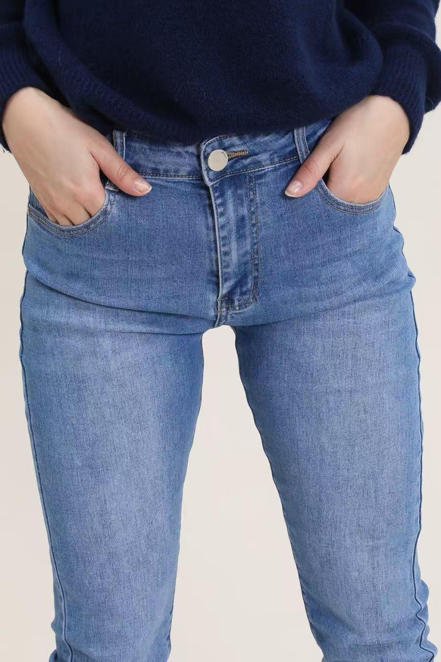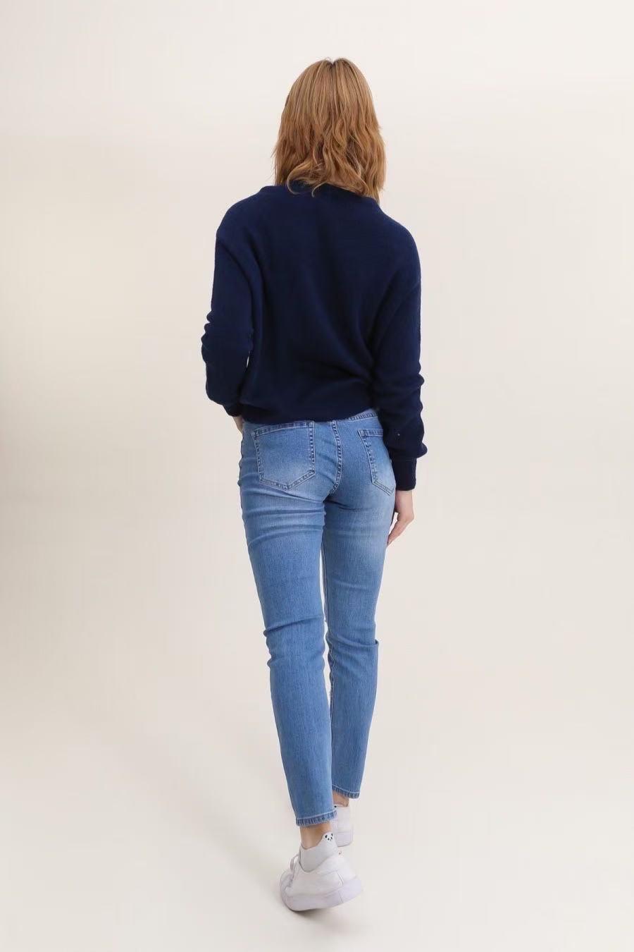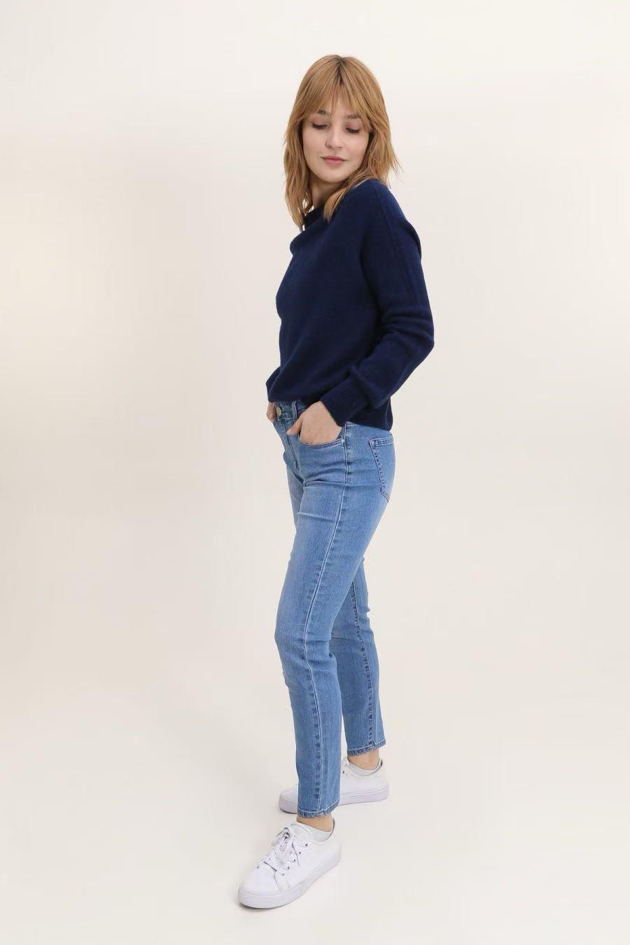 Jean slim taille haute bleu.