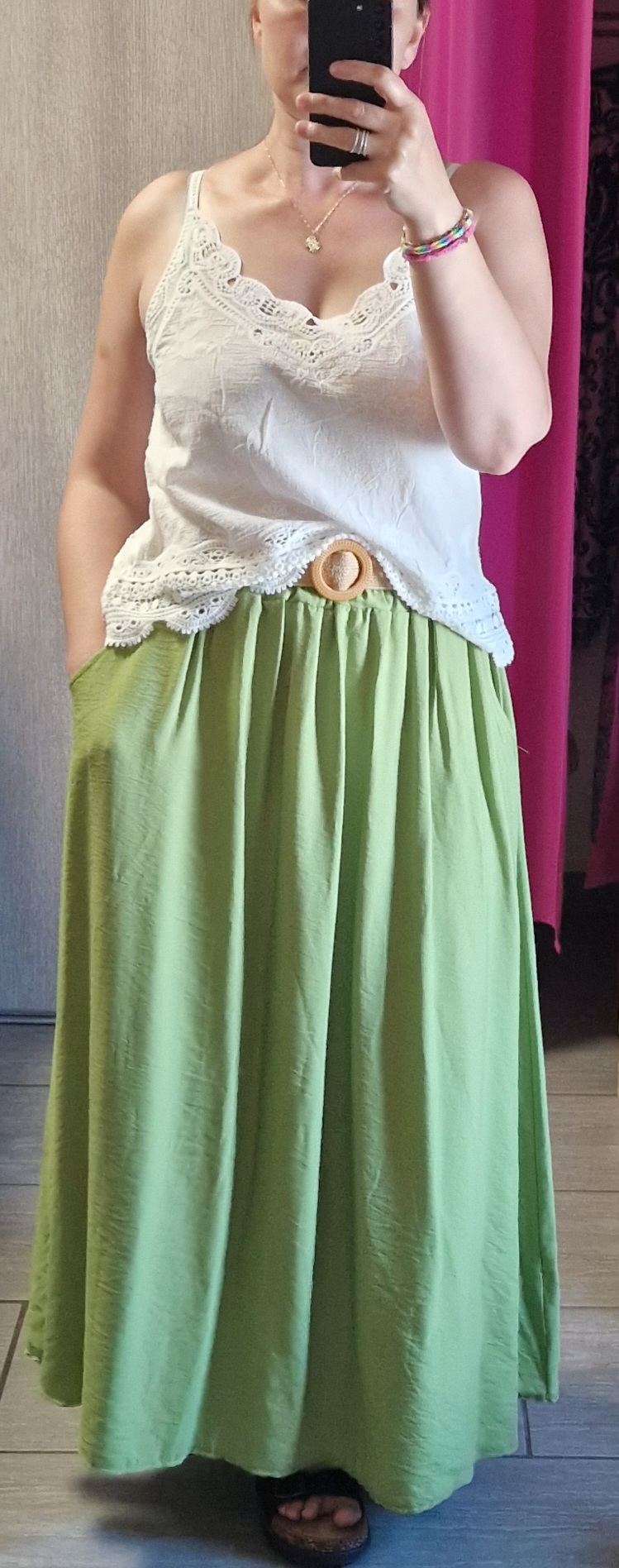 Jupe longue taille élastique avec ceinture élastique.