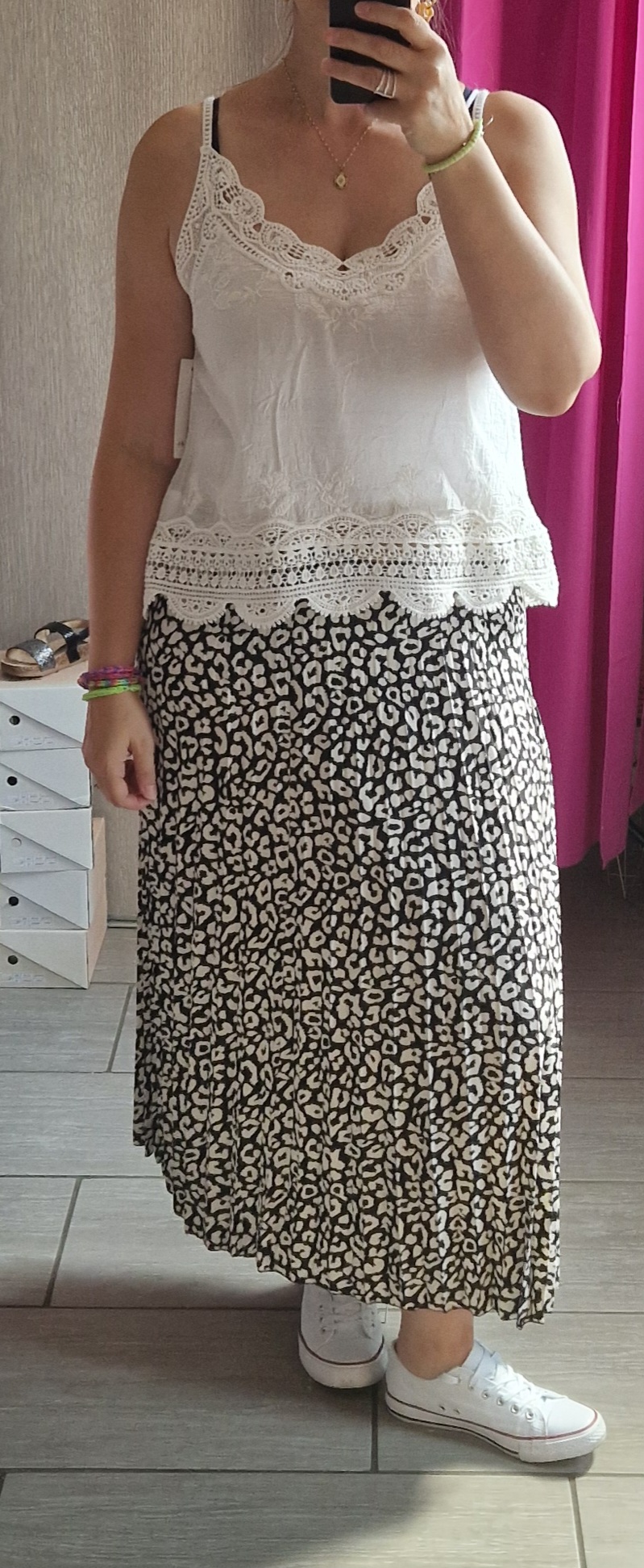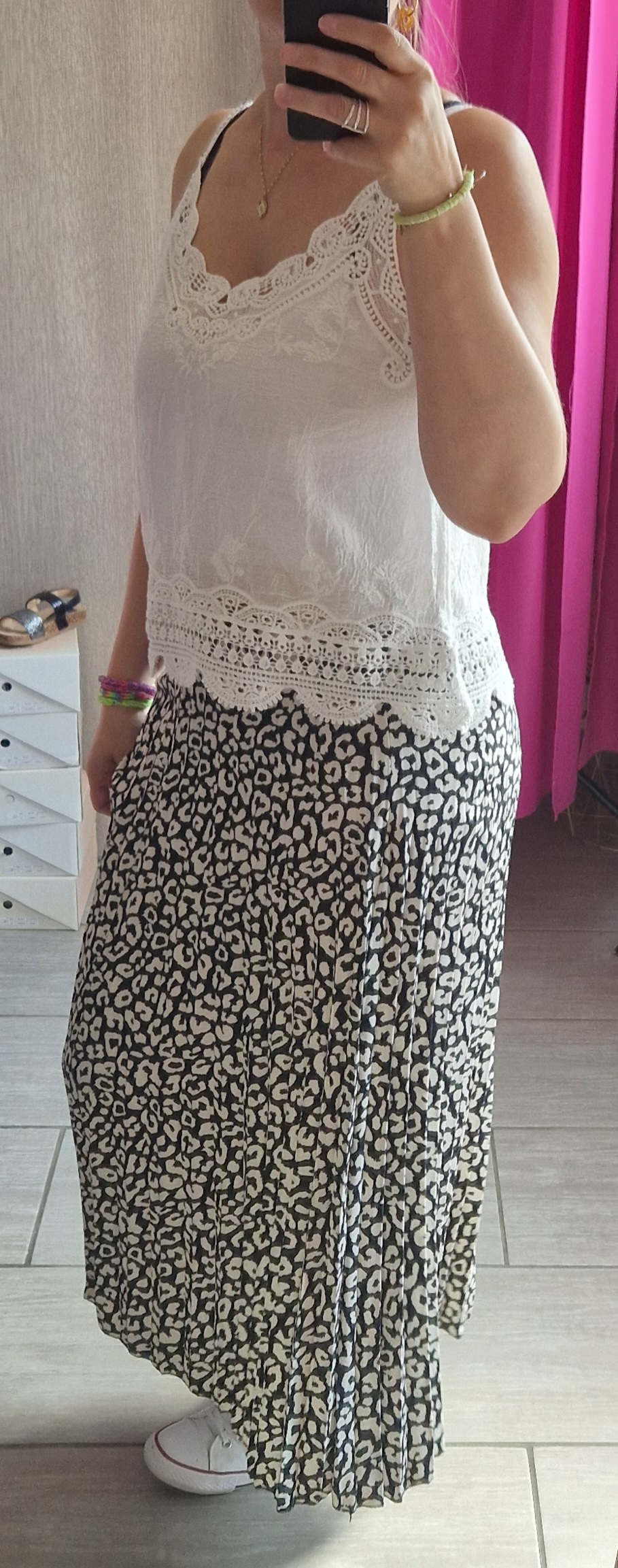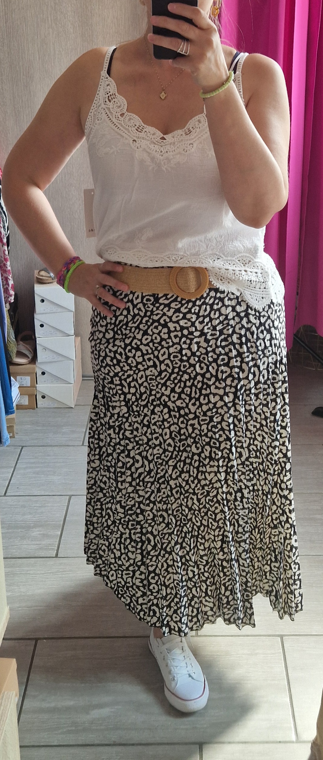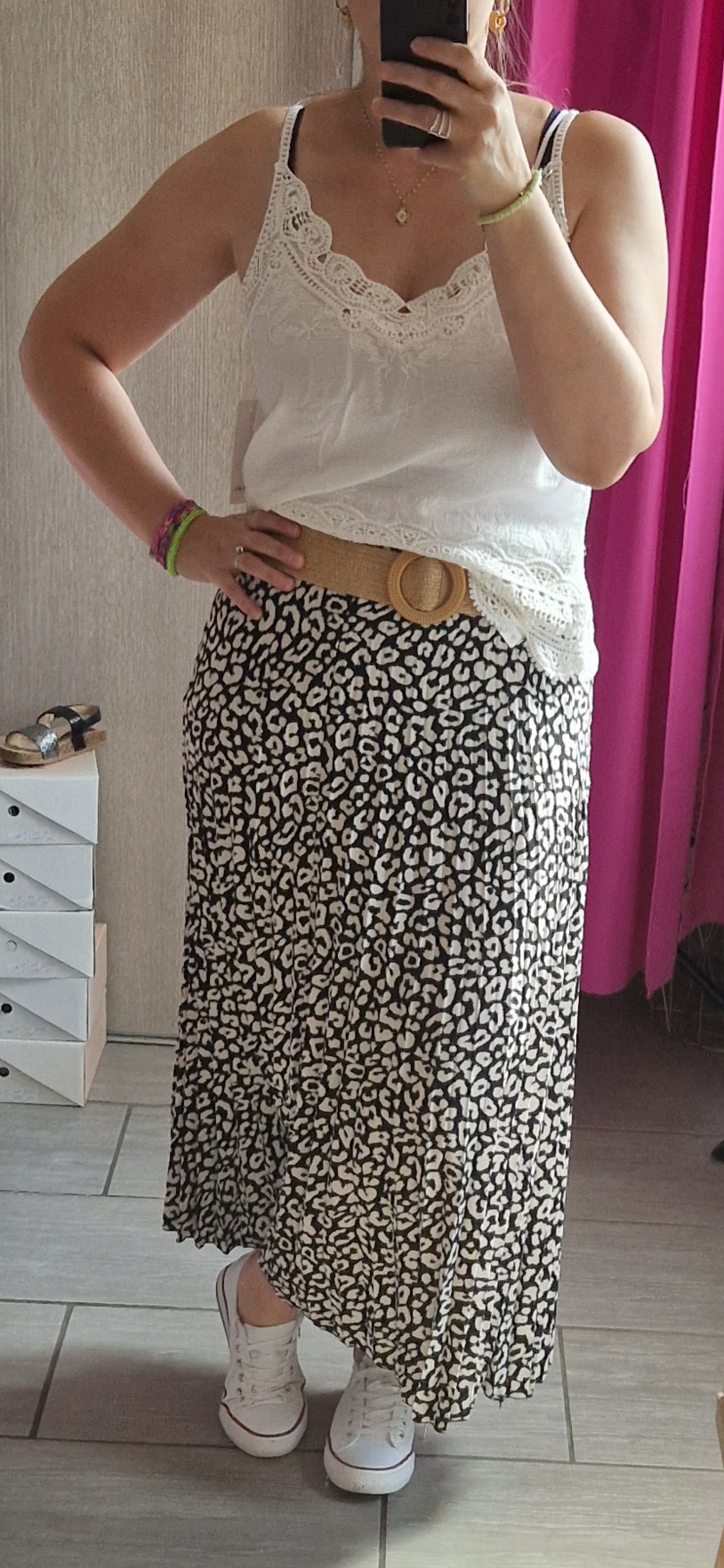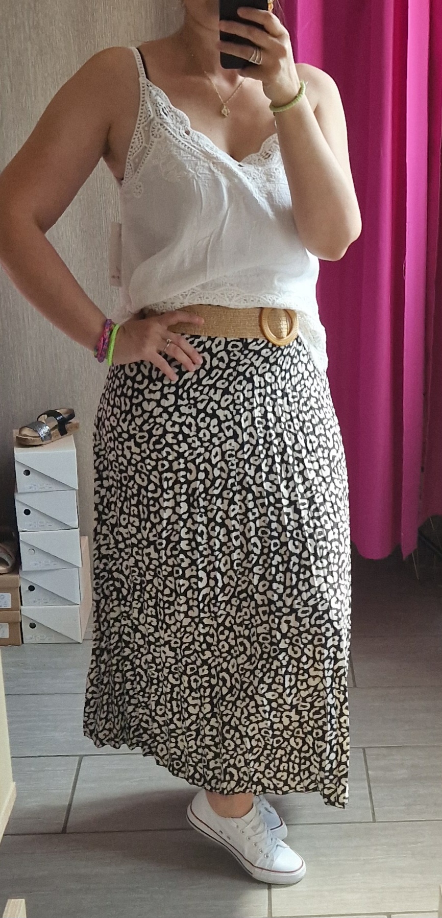 Jupe plissée, taille élastique accompagnée de sa ceinture.