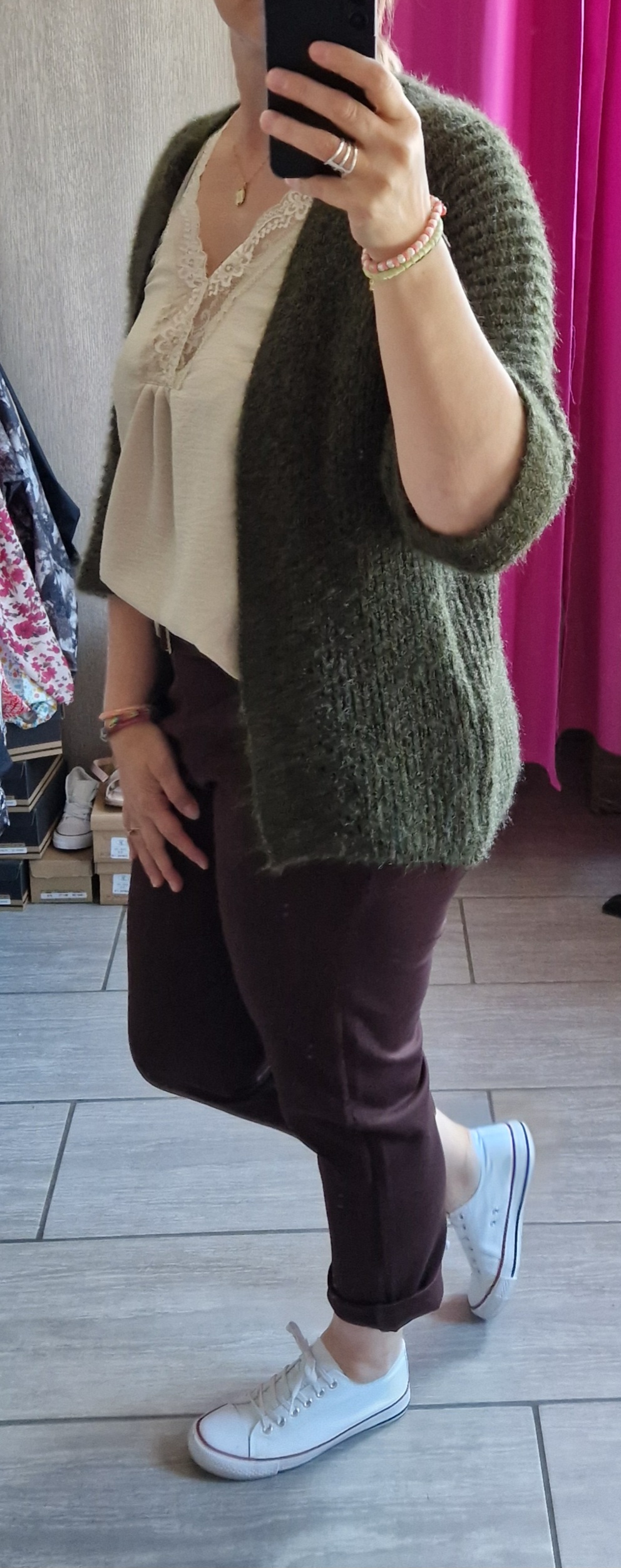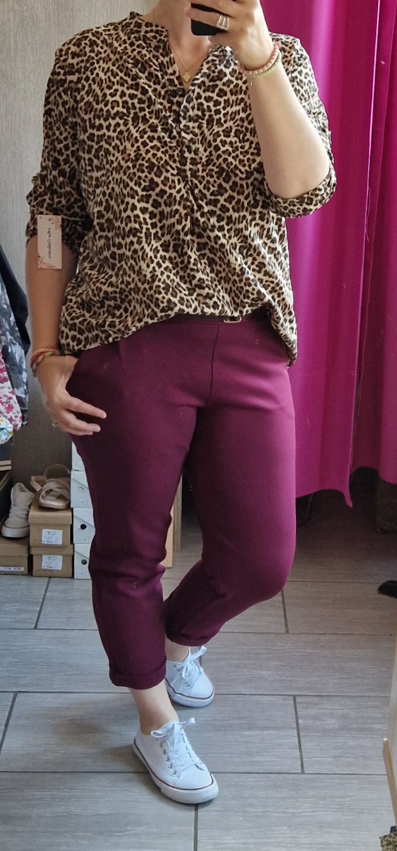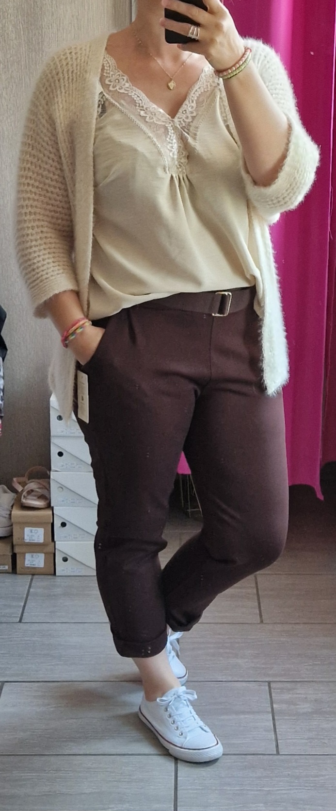 Pantalon 7/8, taille élastique, accompagné de sa ceinture.