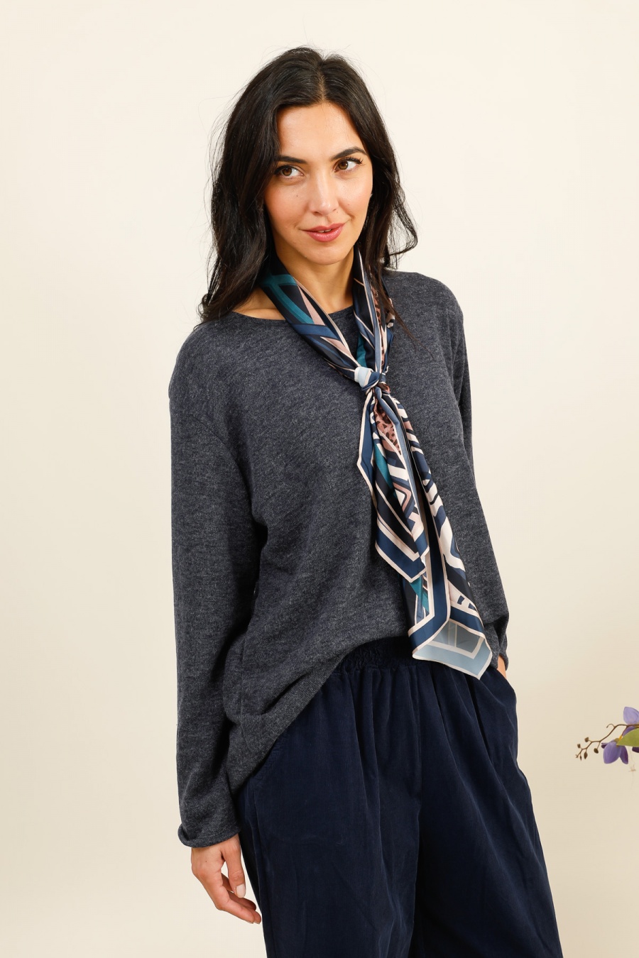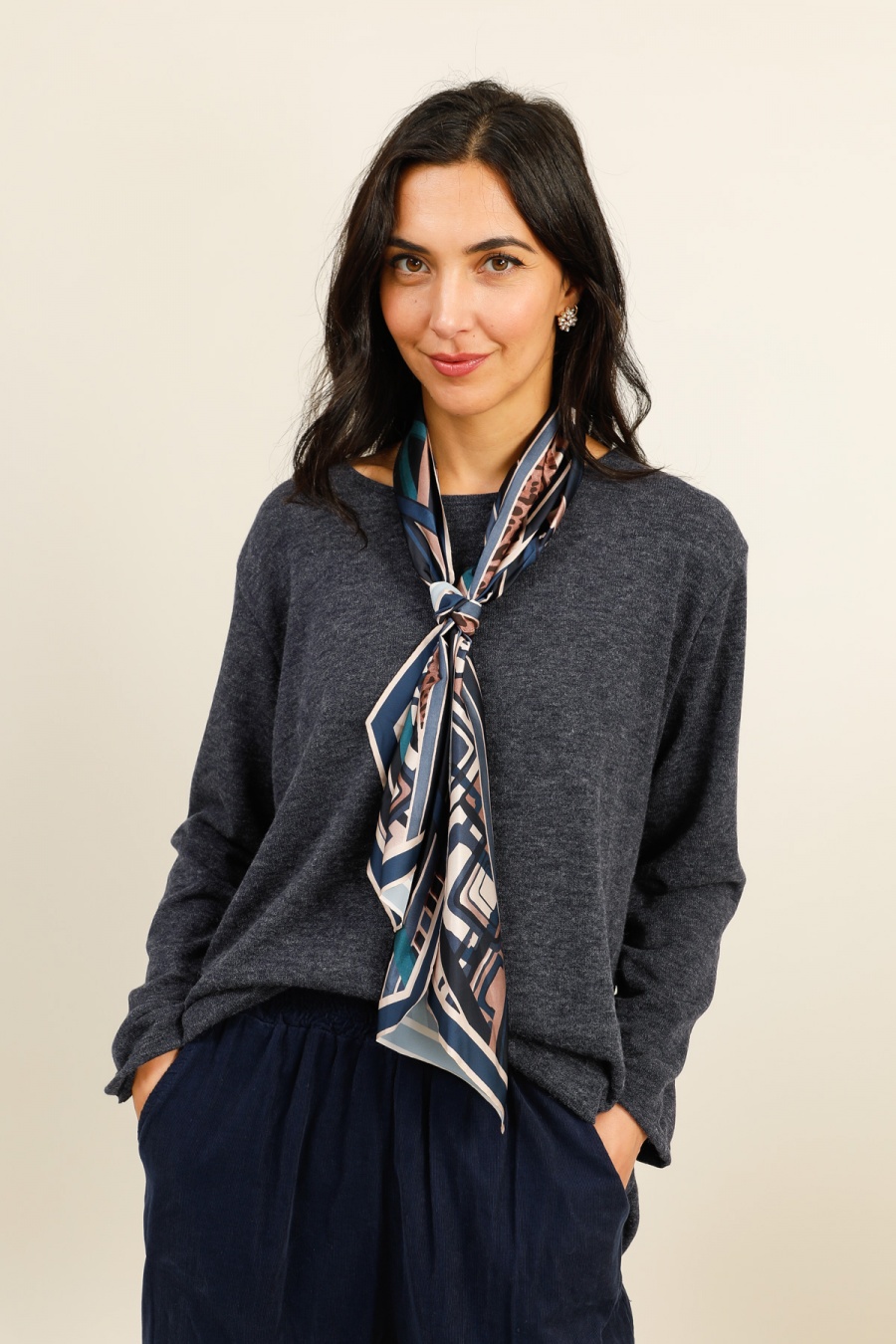 Pull basic accompagné de son foulard, idéal pour vos looks du quotidien.