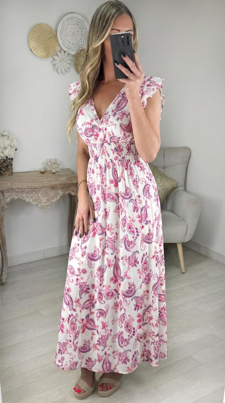 Robe longue avec volants.
