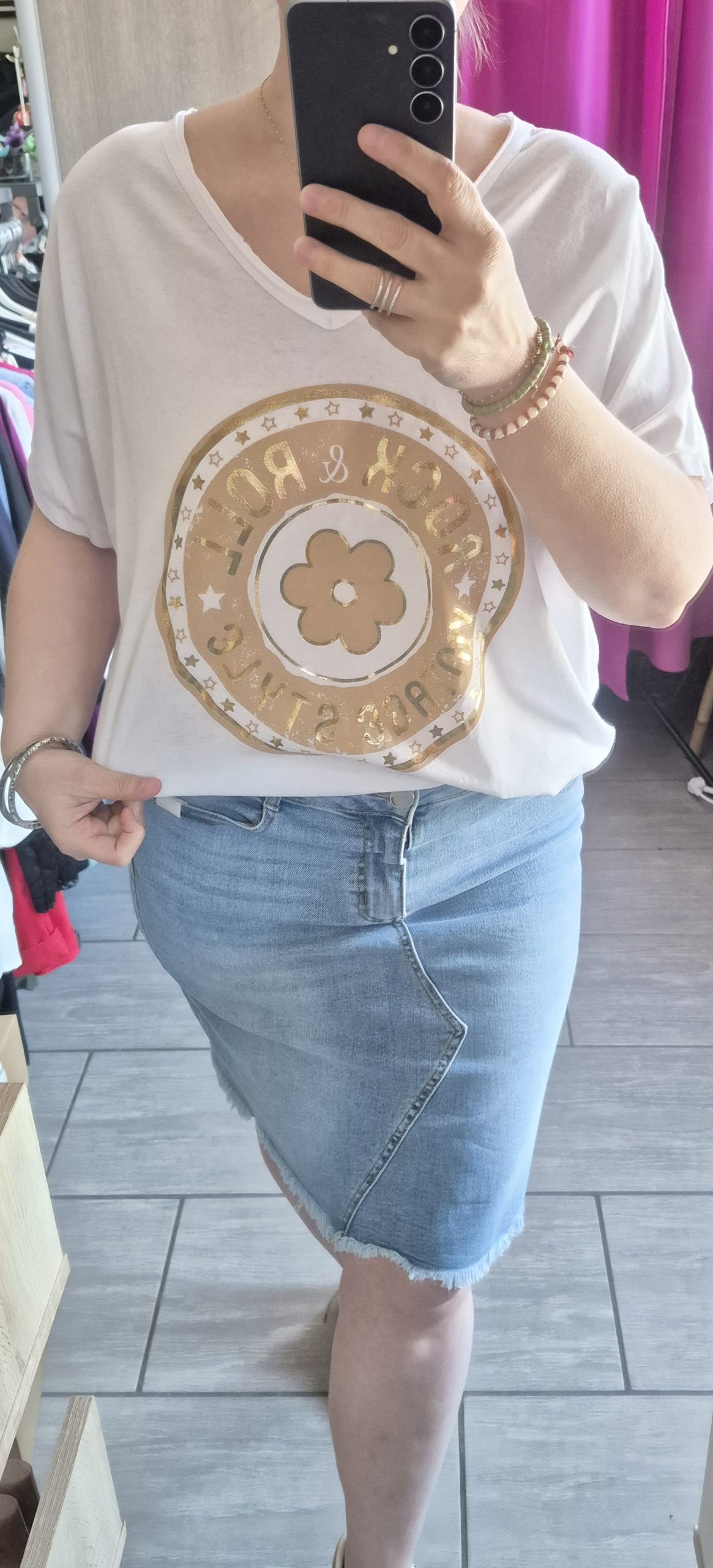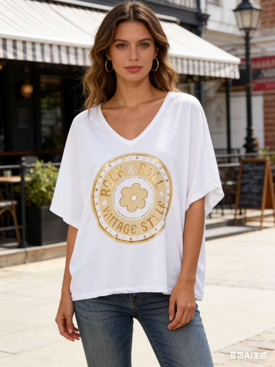 T-shirt coipe loose, avec une impression fleur sur le devant.